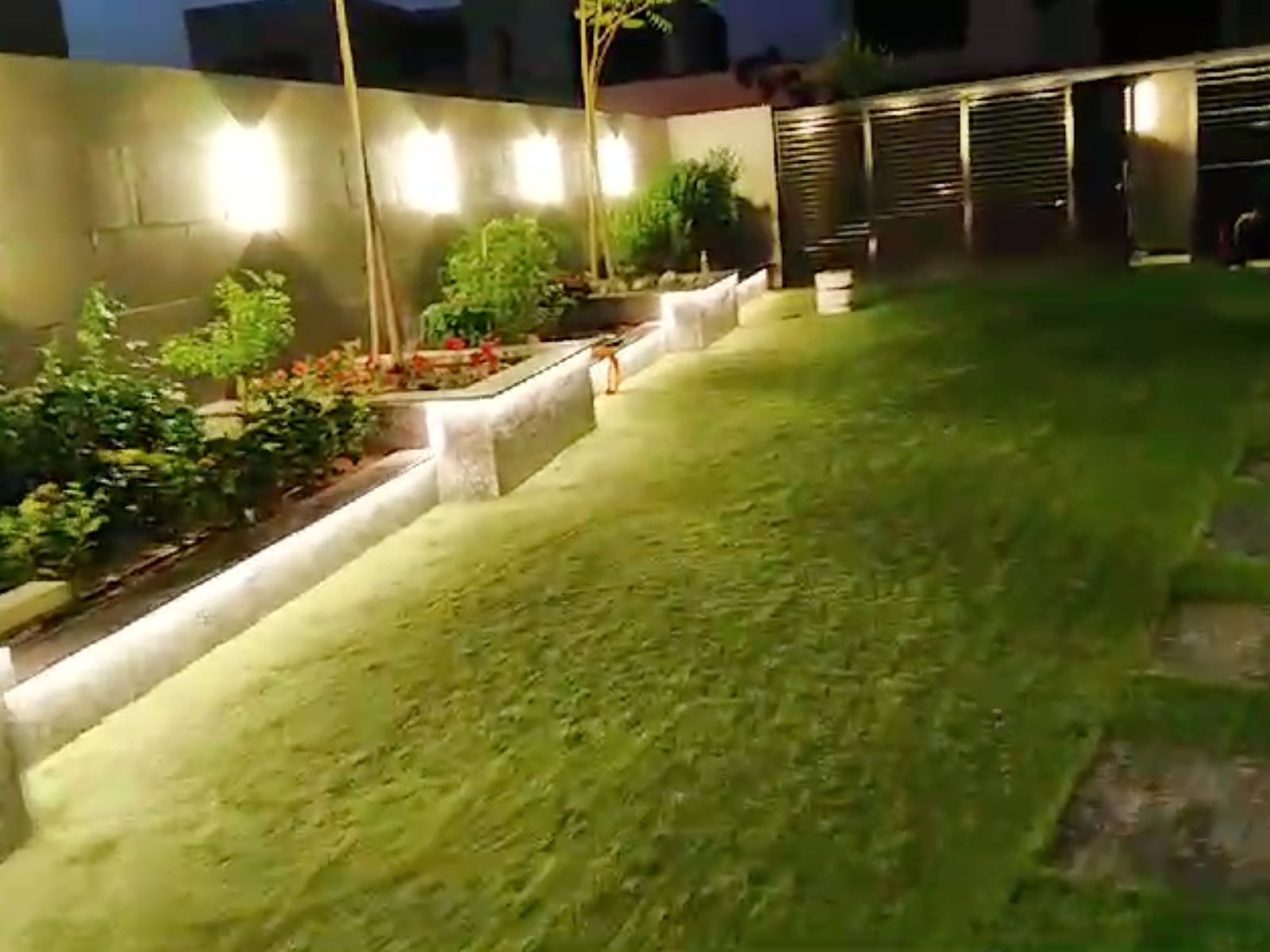 A modern pergola with built-in seating and a fire feature anchors the entertainment zone, while automated irrigation and drainage systems support long-term ease of maintenance. Every detail was designed to evoke relaxation, from barefoot-friendly grass paths to the soothing sound of water features integrated into the pool wall. The final outcome is a private sanctuary that delivers both functional elegance and year-round resort-style living — a true extension of the villa’s modern interiors into a natural, open-air luxury setting.